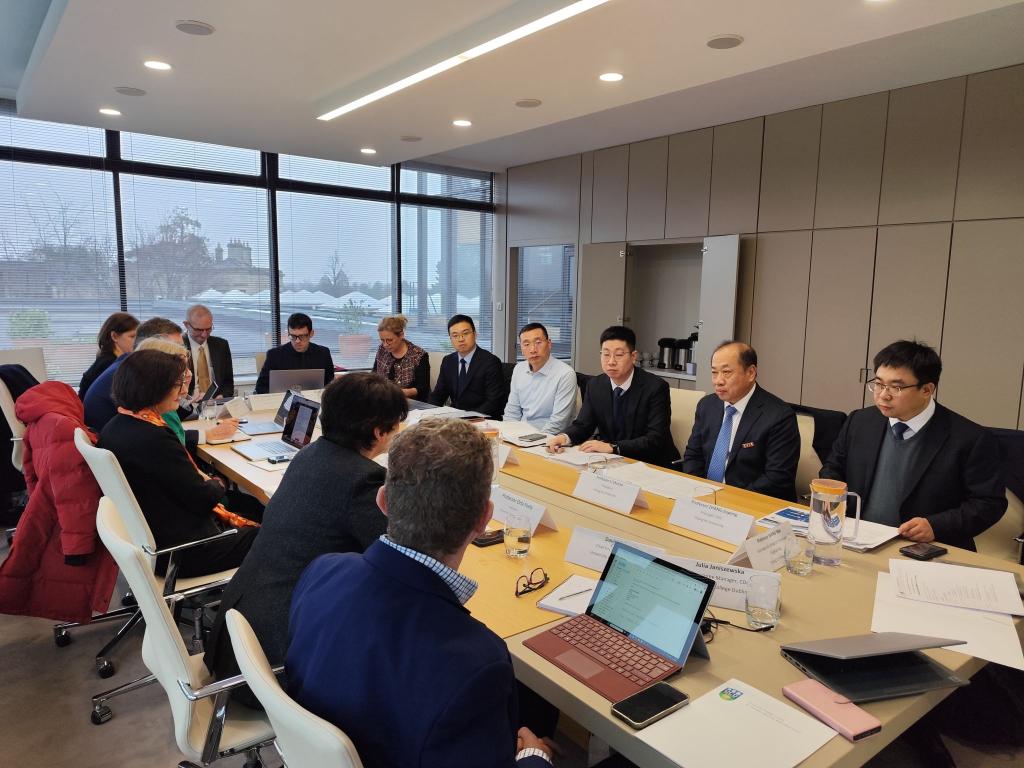 在爱尔兰都柏林大学,双方召开了长安都柏林国际交通学院2025年度联合管理委员会会议,爱尔兰都柏林大学校长、联合管理委员会副主任Orla Feely,爱尔兰都柏林大学副校长、联合管理委员会委员Dolores O'Riordan等出席会议。会后,代表团实地参访了都柏林大学先进材料制造实验室、技术孵化与转化中心,与相关负责人就实验室建设、成果转化等内容开展专题交流。